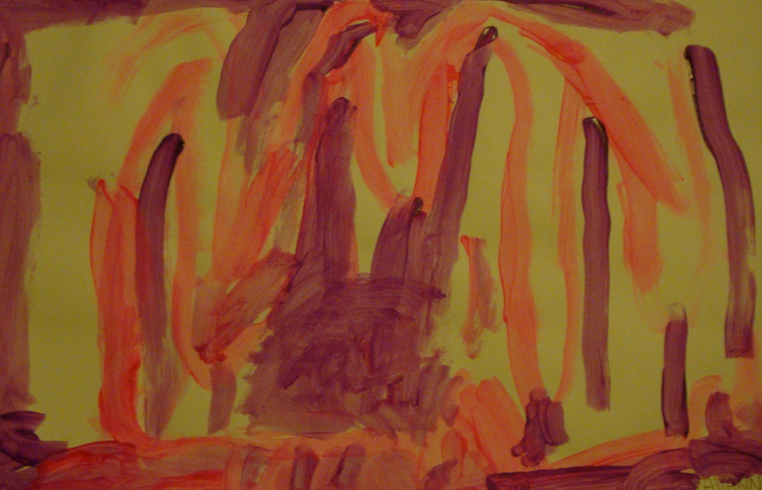 Here are some of the students paintings where they used different types of lines to depict mountain peaks.