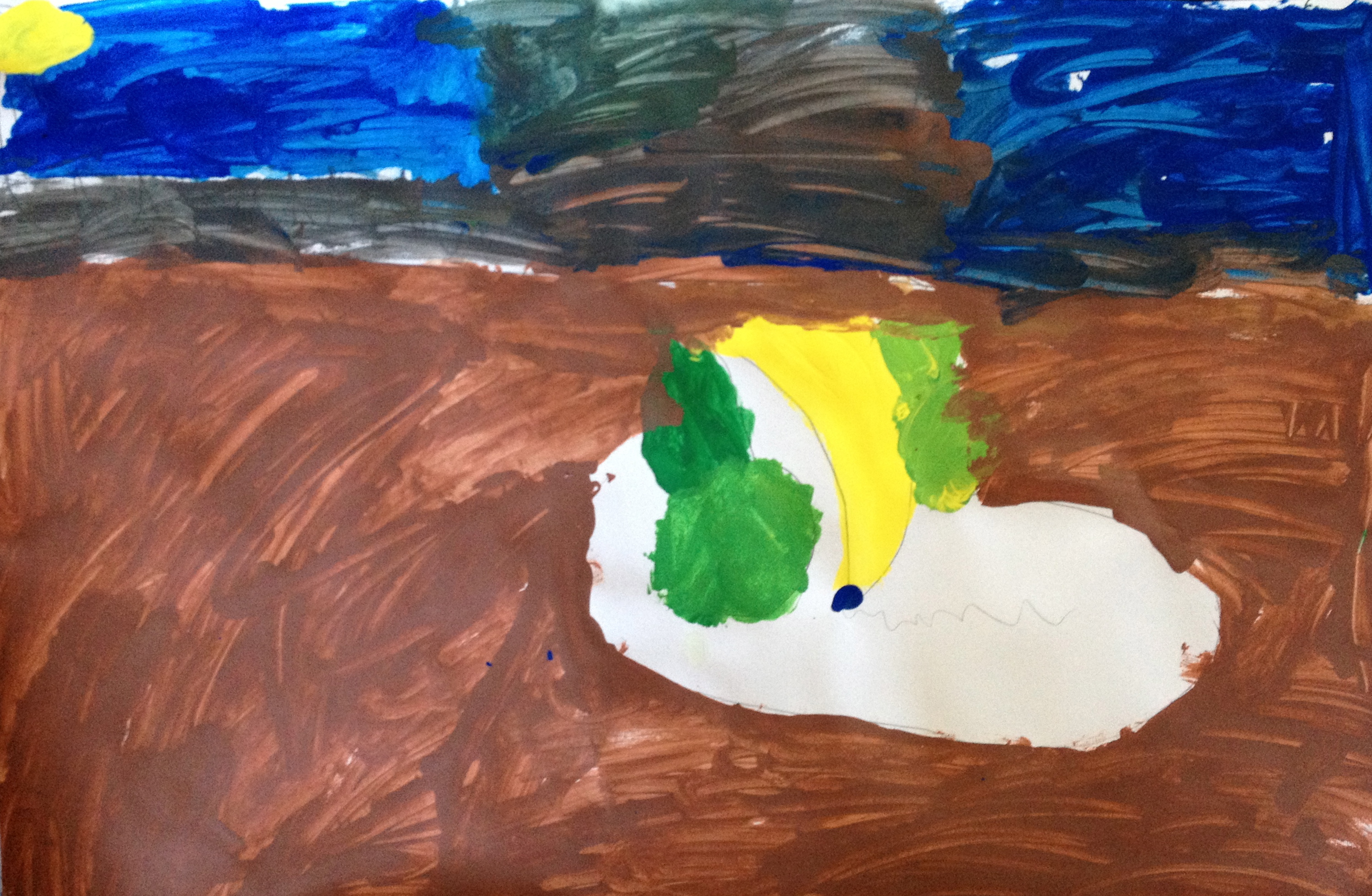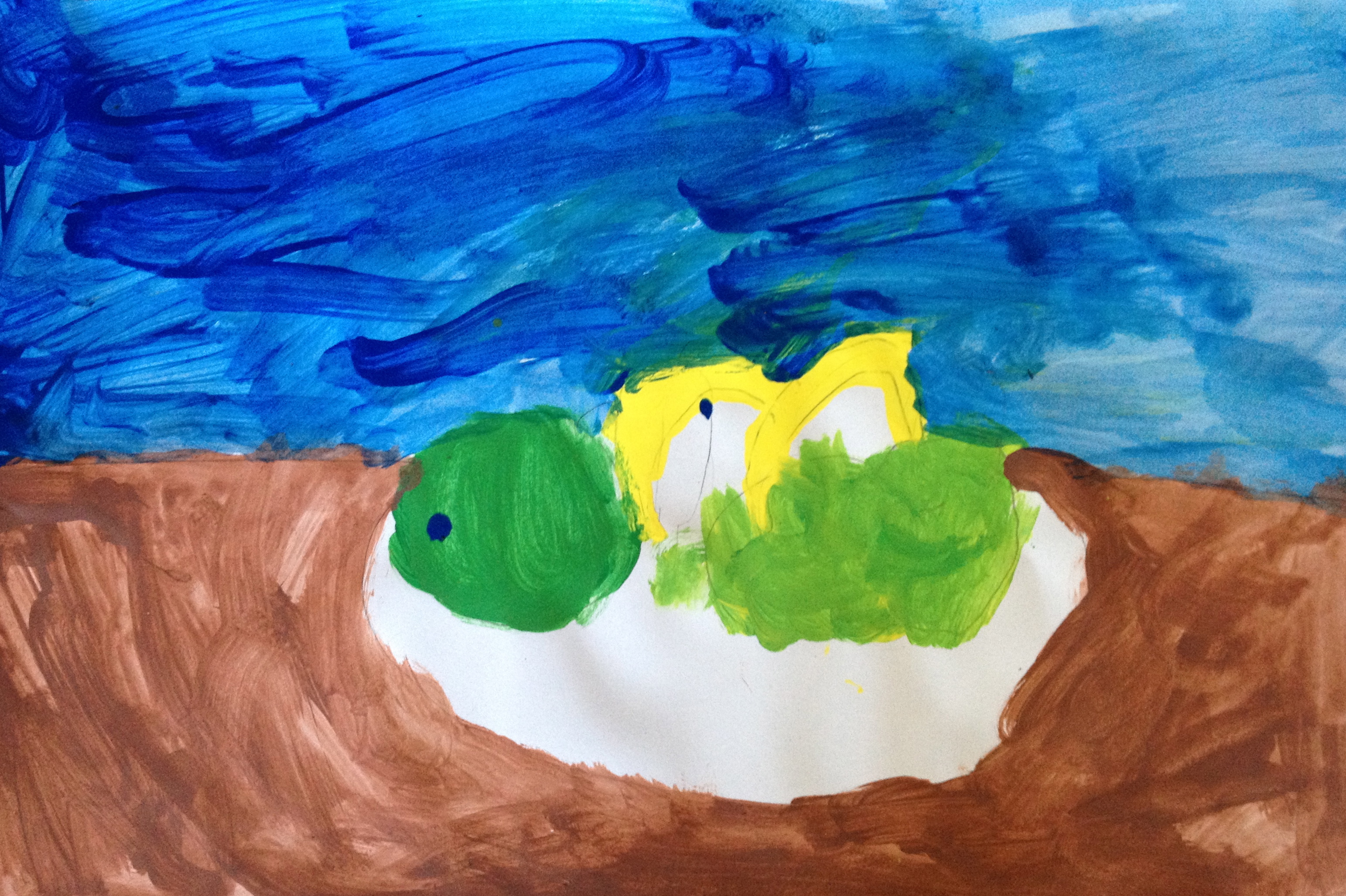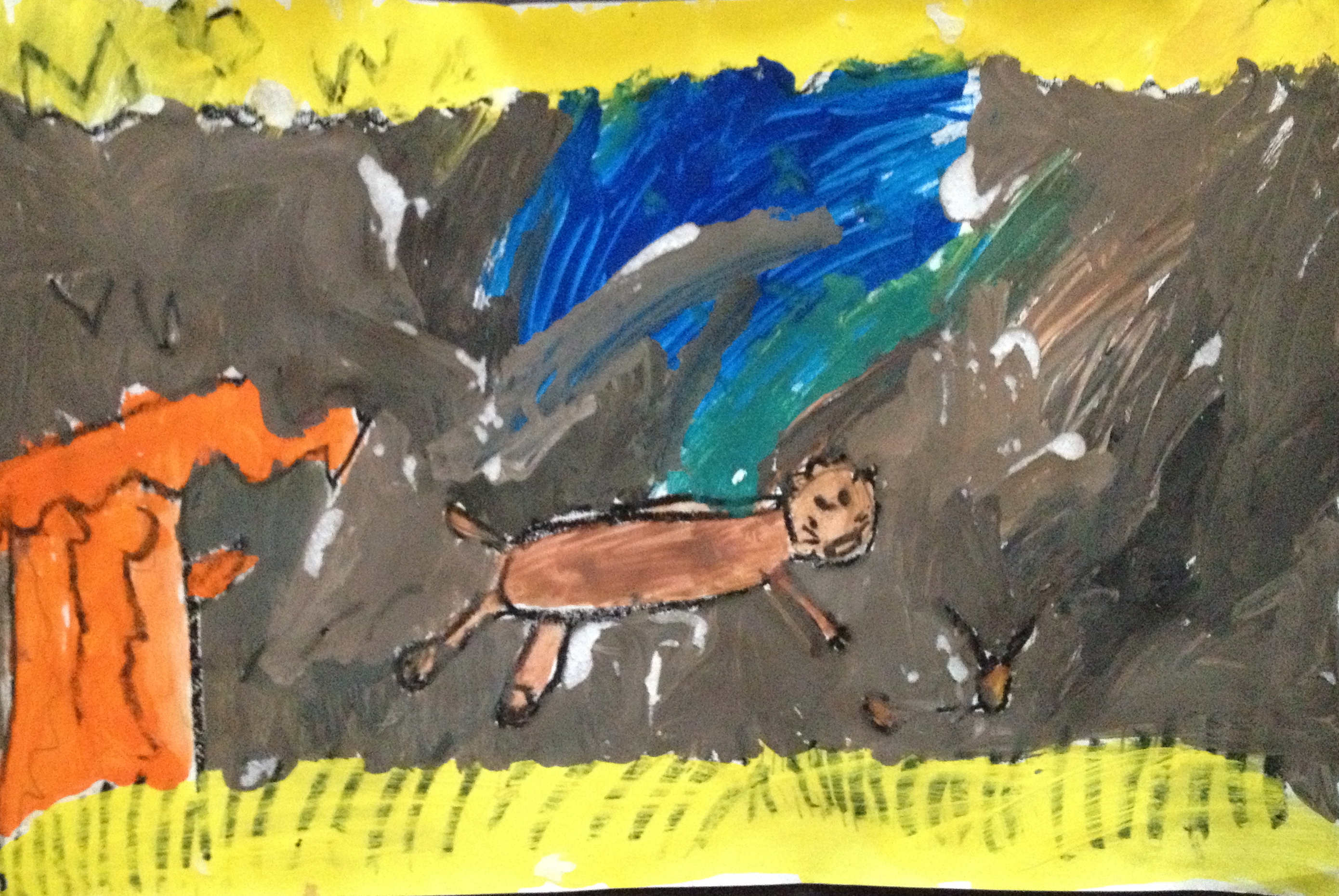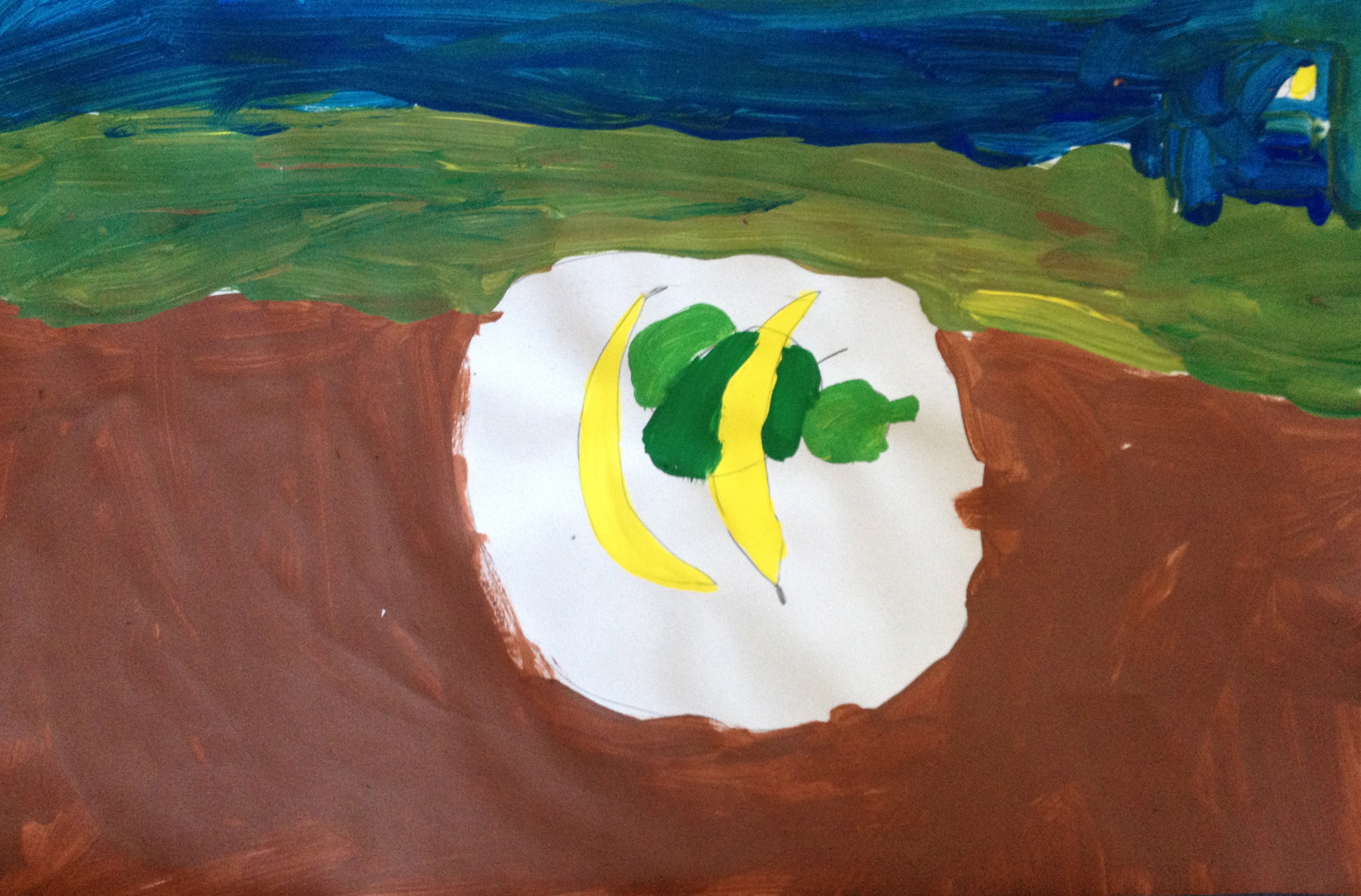 Over the last two months, we have looked at the paintings and still lifes of Realist/Impressionist Edouard Manet, the colorful horses of the Blue Rider’s Franz Marc, and the surrealistic memories of Marc Chagall. Our students learned about tertiary colors while painting the yellow-greens of bananas, apples, and pears in their own still lifes. Instead of horses like Franz Marc, I thought it would be fun to give some lions personality in our paintings. The artists were given blue, white, and black to paint them while learning that a color+white is called a tint and a color+black is a shade. I let their memories and imaginations soar after viewing Marc Chagall’s “I and the Village.” This is a personal favorite of mine and I loved sharing it with the young artists. Every child’s paintings were so different with a special moment illustrated in their tempera painting. Enjoy!IMG_0490