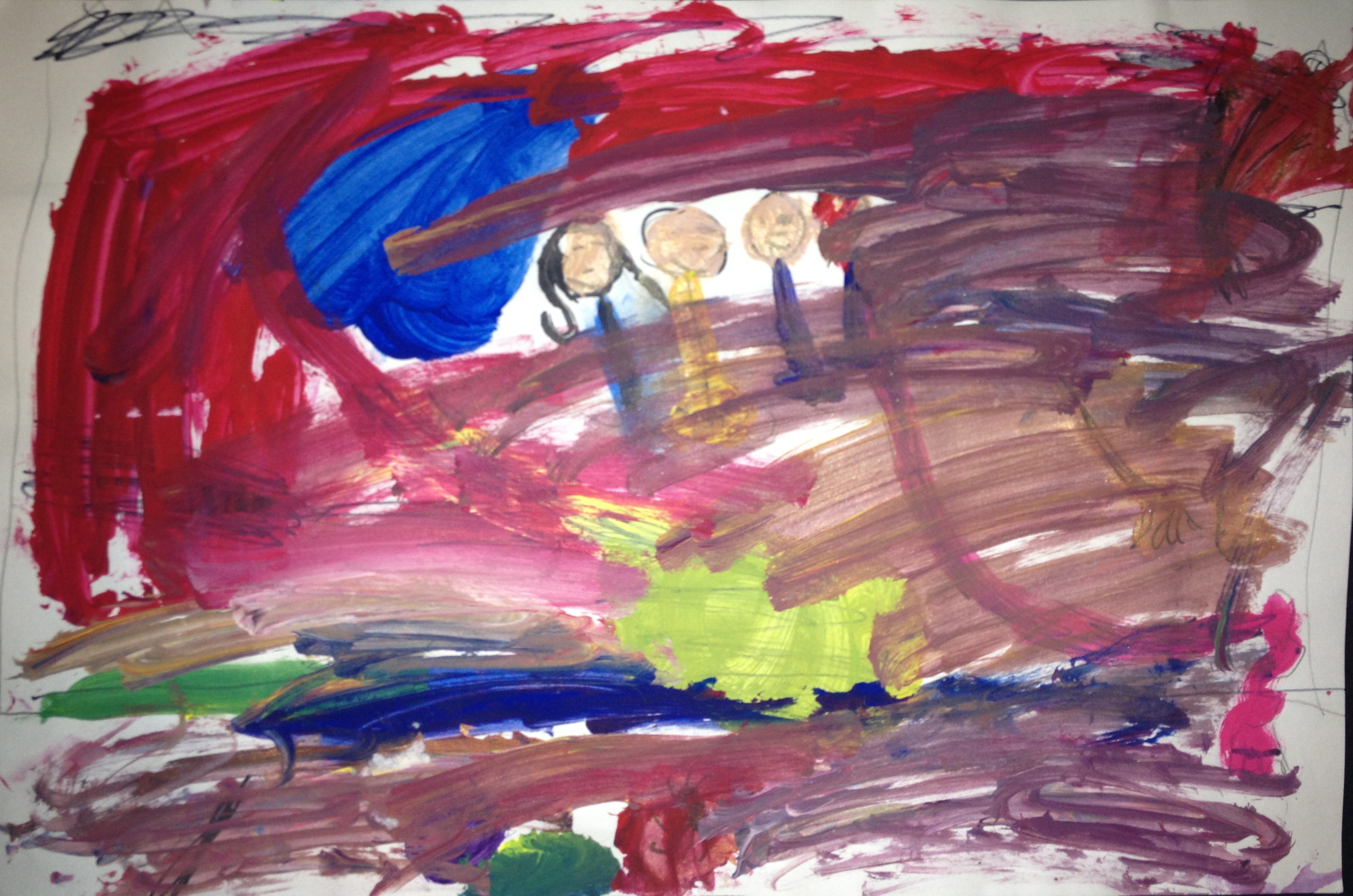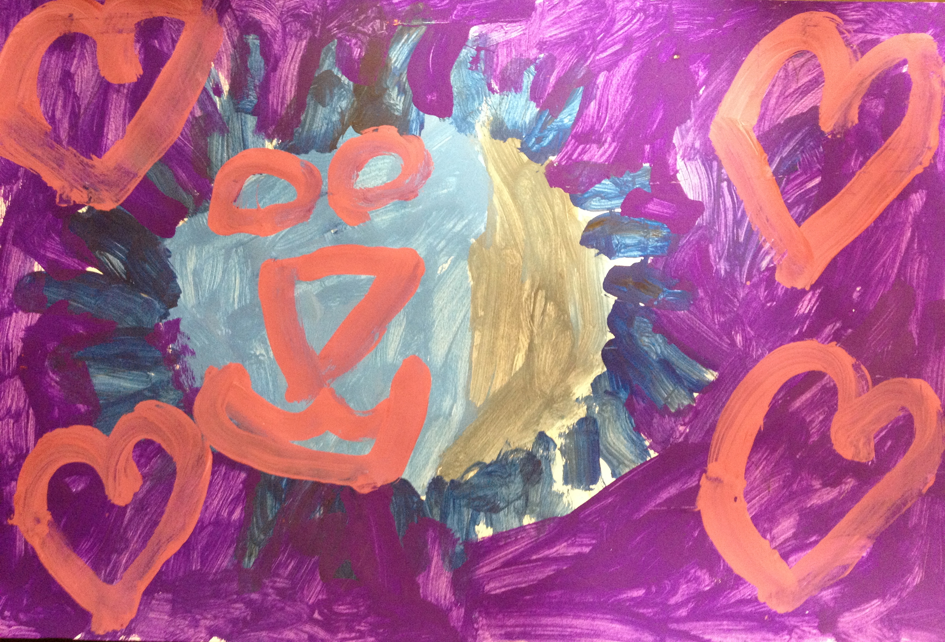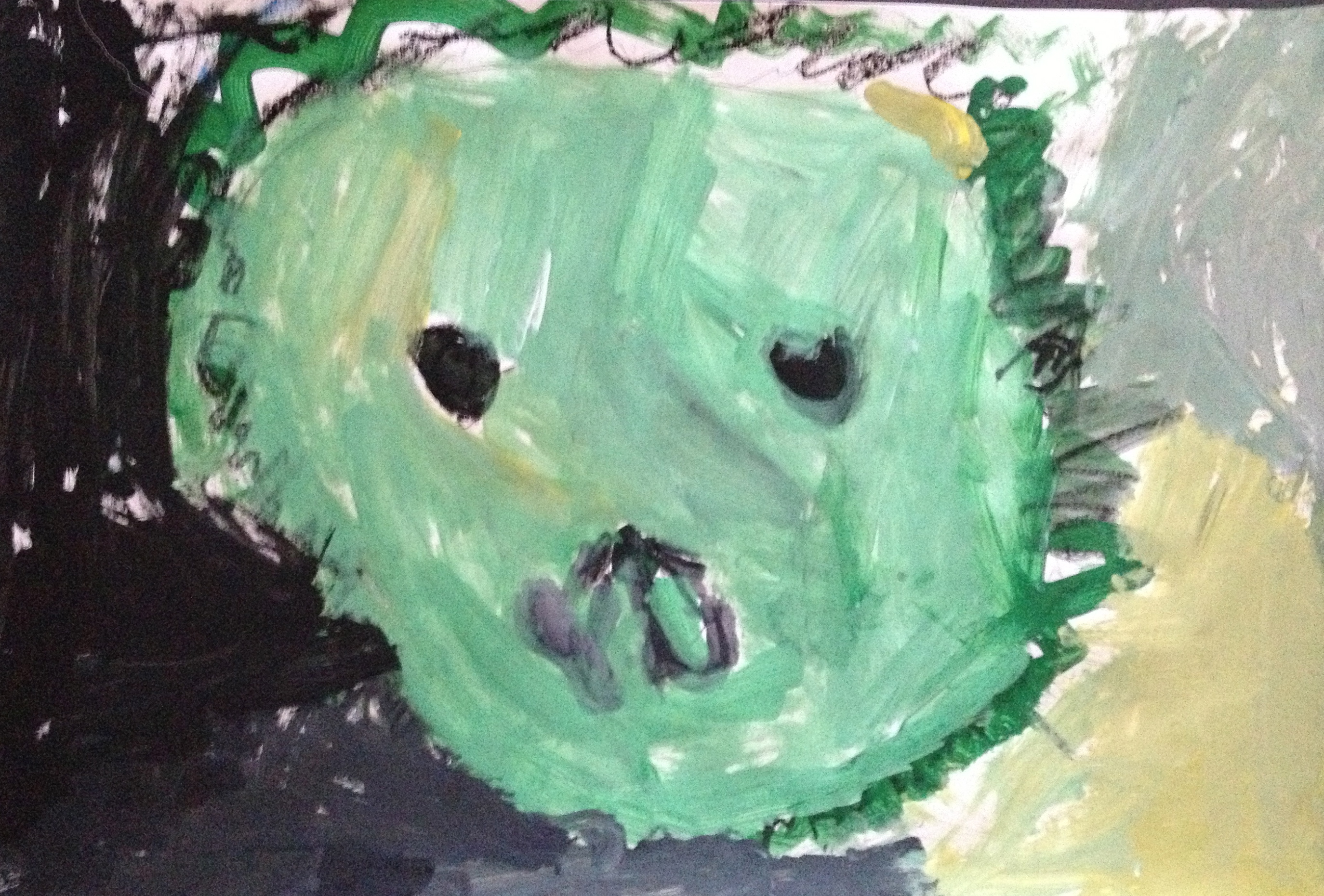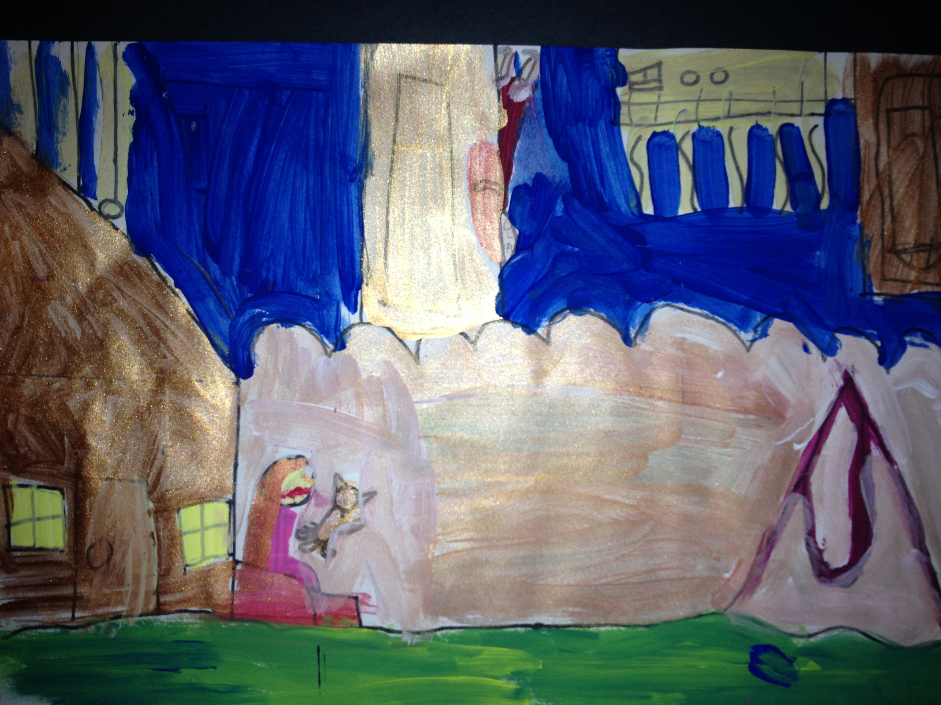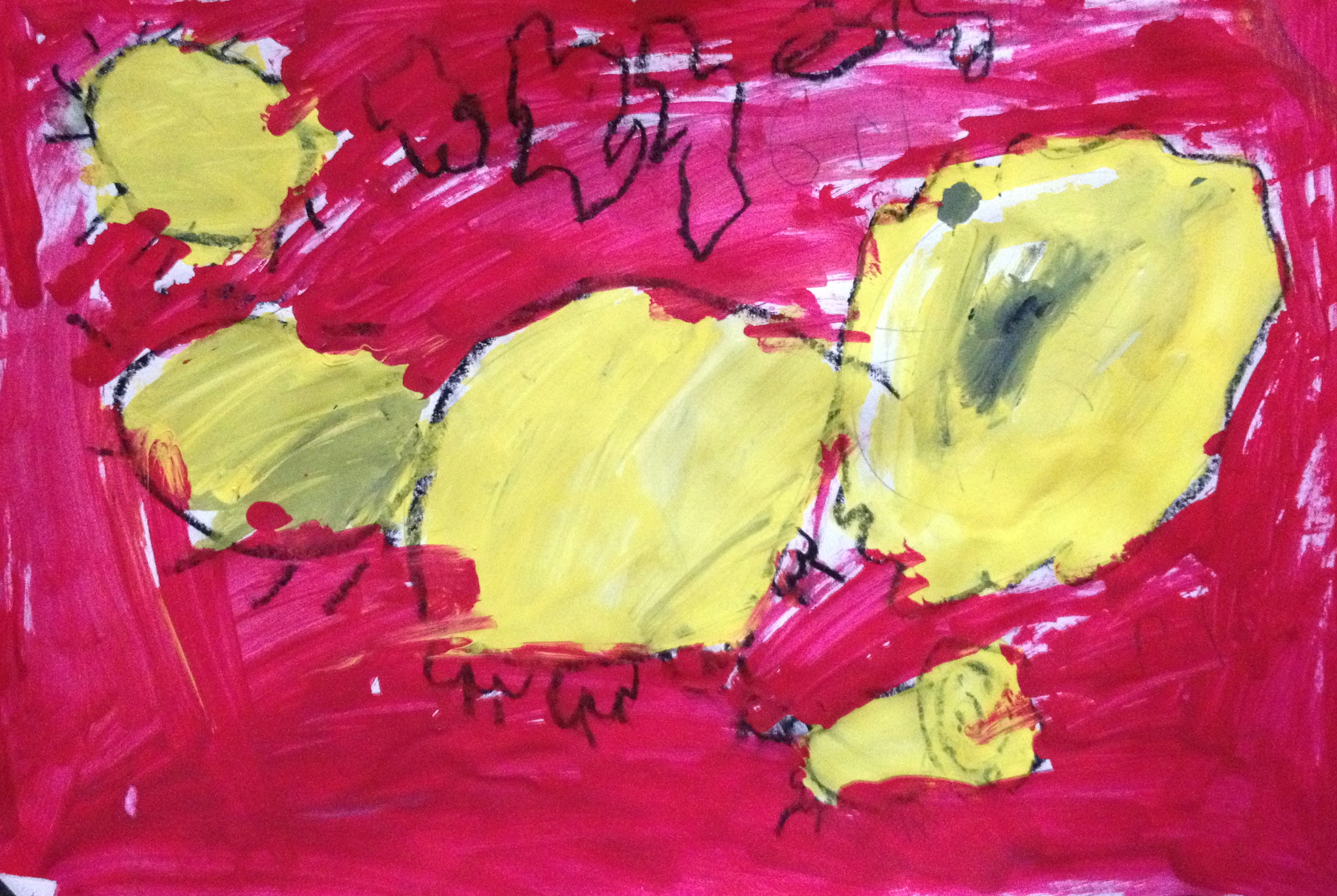 Over the last two months, we have looked at the paintings and still lifes of Realist/Impressionist Edouard Manet, the colorful horses of the Blue Rider’s Franz Marc, and the surrealistic memories of Marc Chagall. Our students learned about tertiary colors while painting the yellow-greens of bananas, apples, and pears in their own still lifes. Instead of horses like Franz Marc, I thought it would be fun to give some lions personality in our paintings. The artists were given blue, white, and black to paint them while learning that a color+white is called a tint and a color+black is a shade. I let their memories and imaginations soar after viewing Marc Chagall’s “I and the Village.” This is a personal favorite of mine and I loved sharing it with the young artists. Every child’s paintings were so different with a special moment illustrated in their tempera painting. Enjoy!IMG_0490