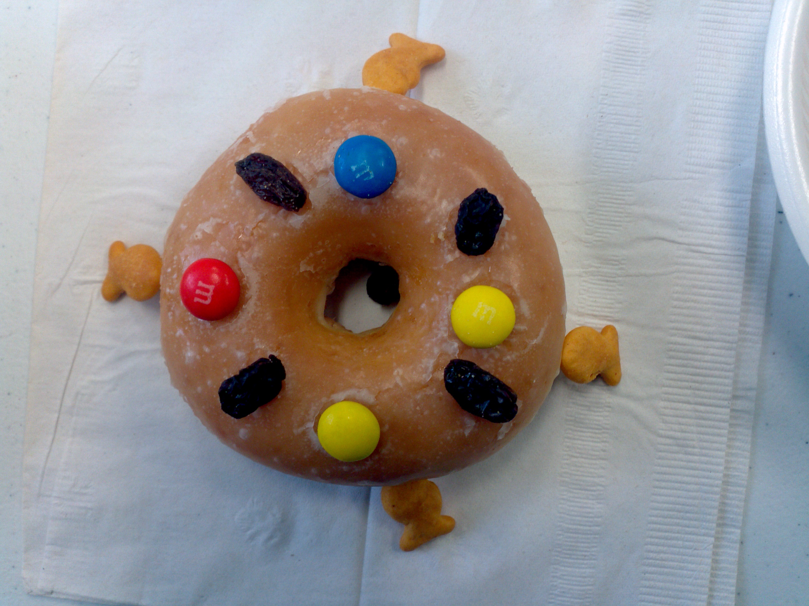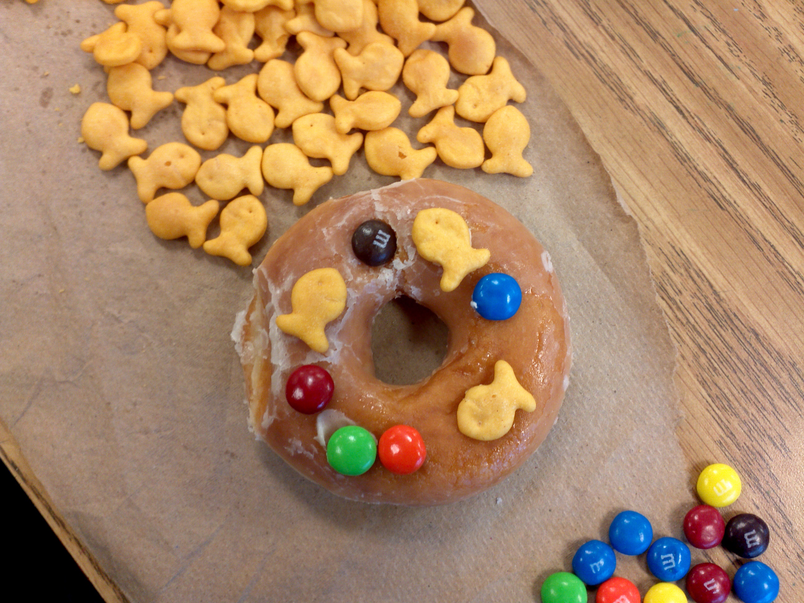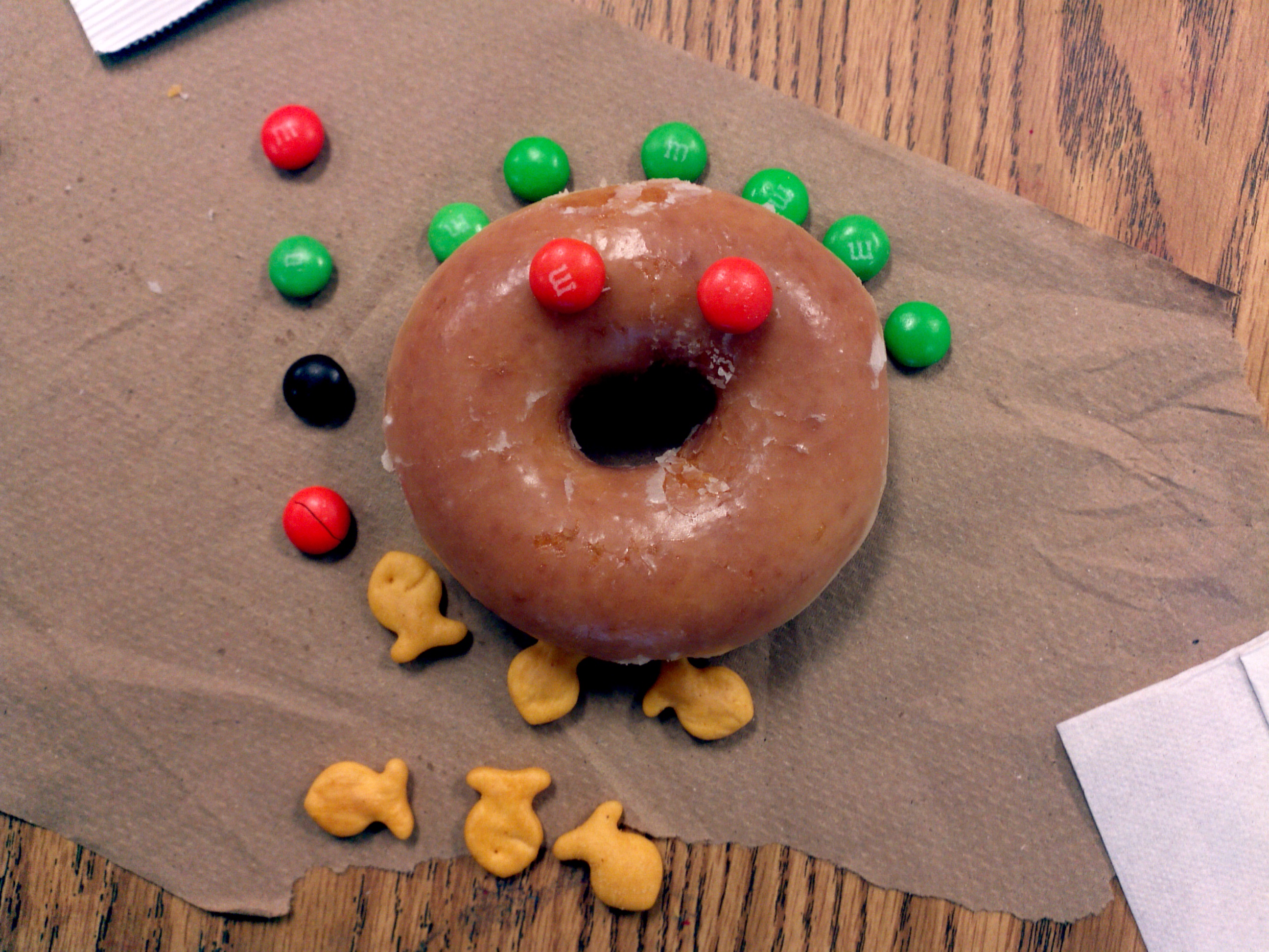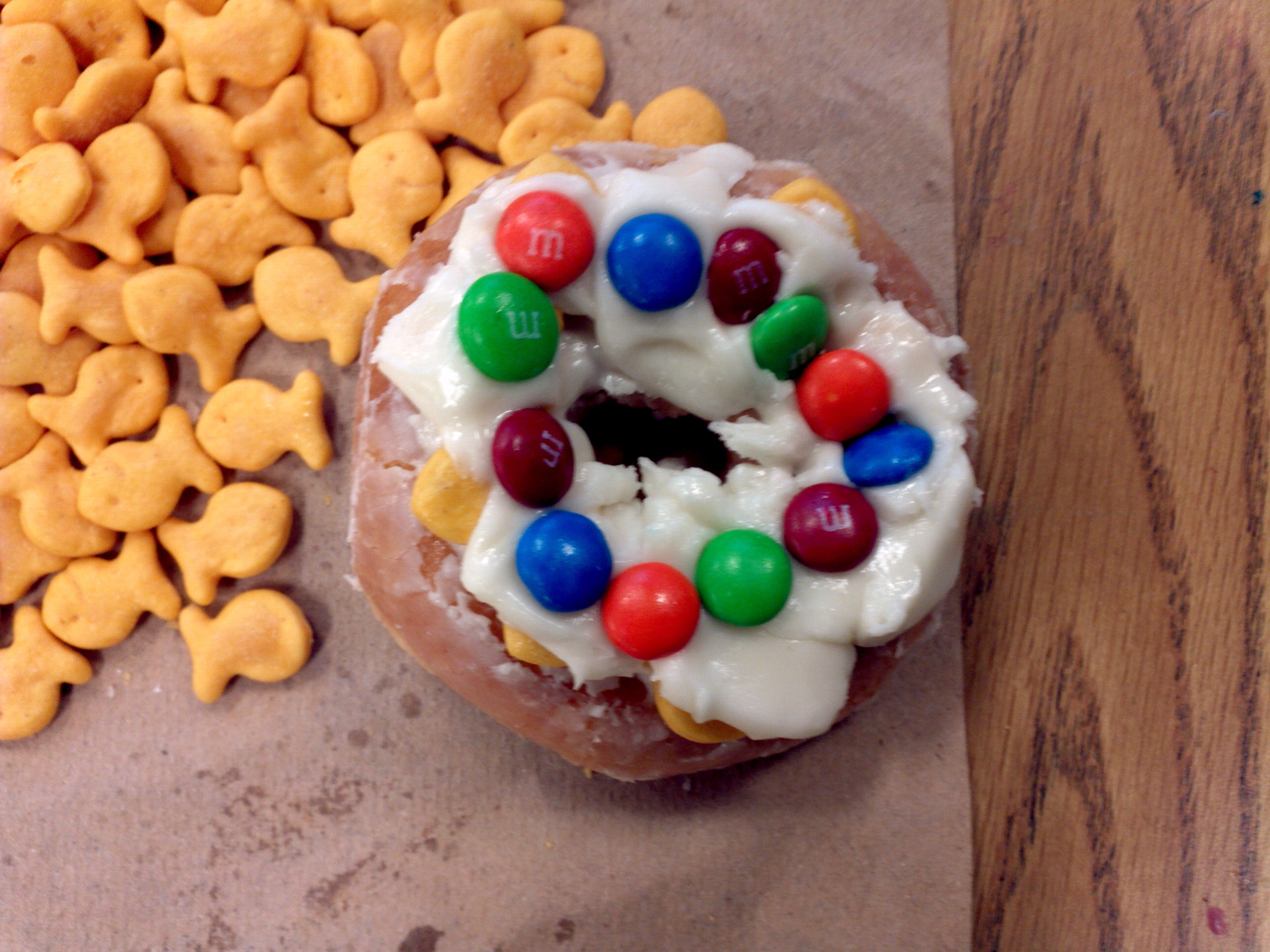 Amazing creations using goldfish, raisins, m&ms, and doughnuts to create a radial design. It’s a great way to close out the year and the kids love it!