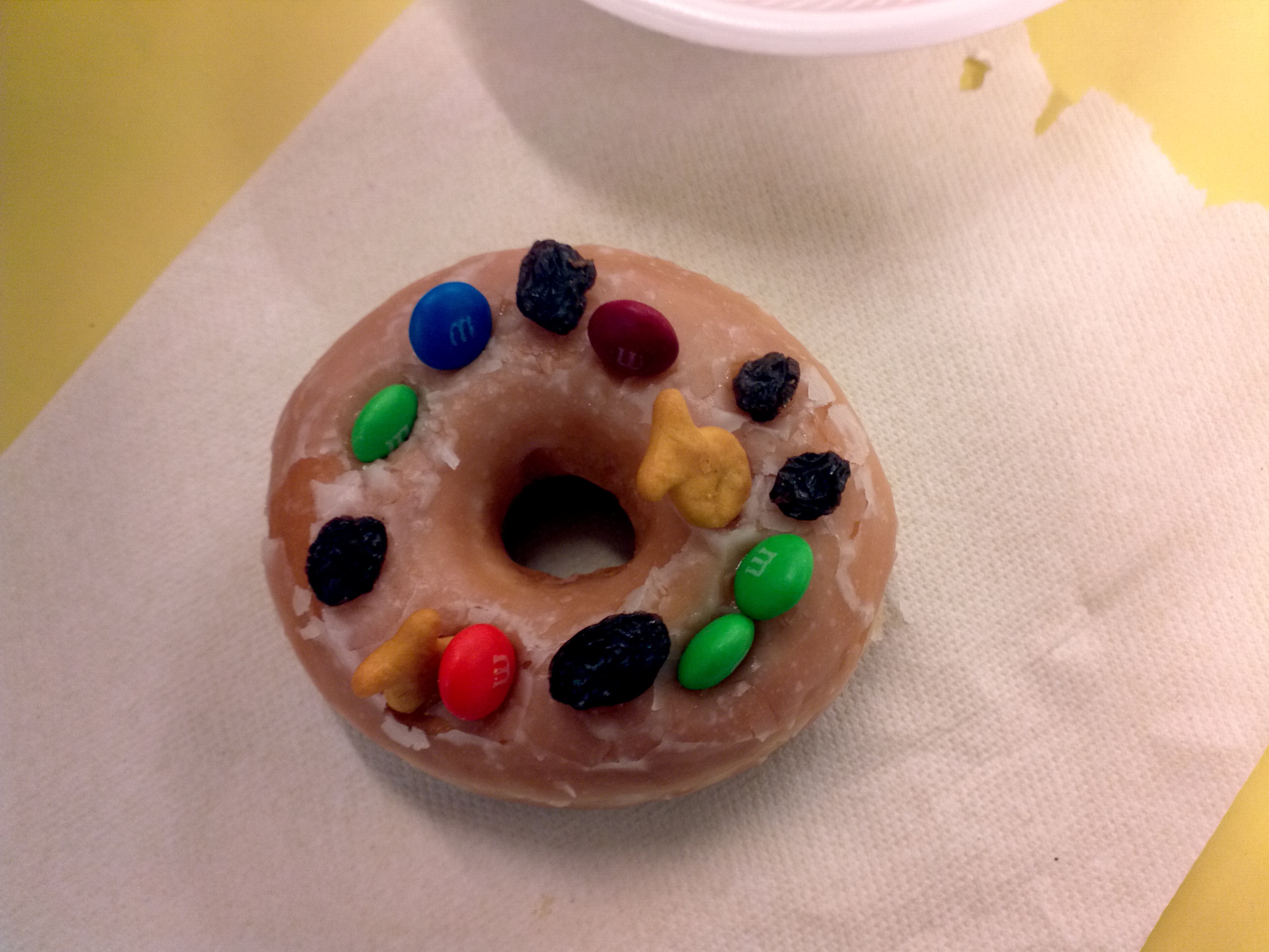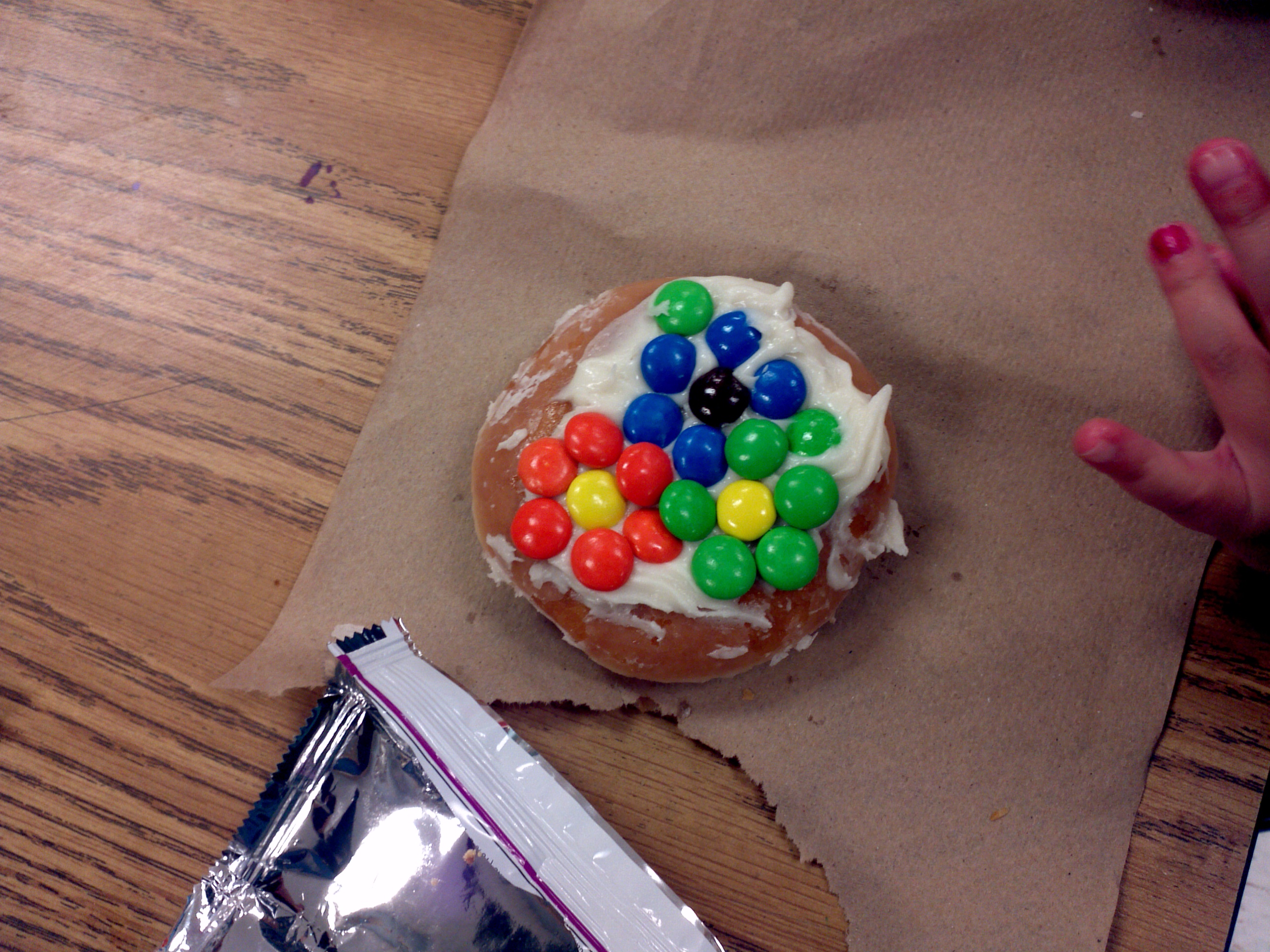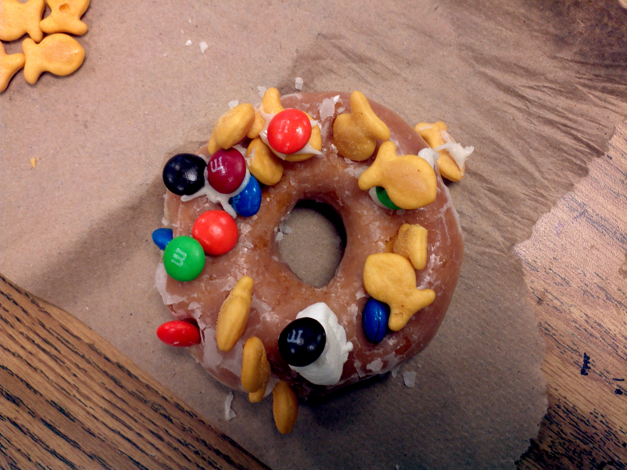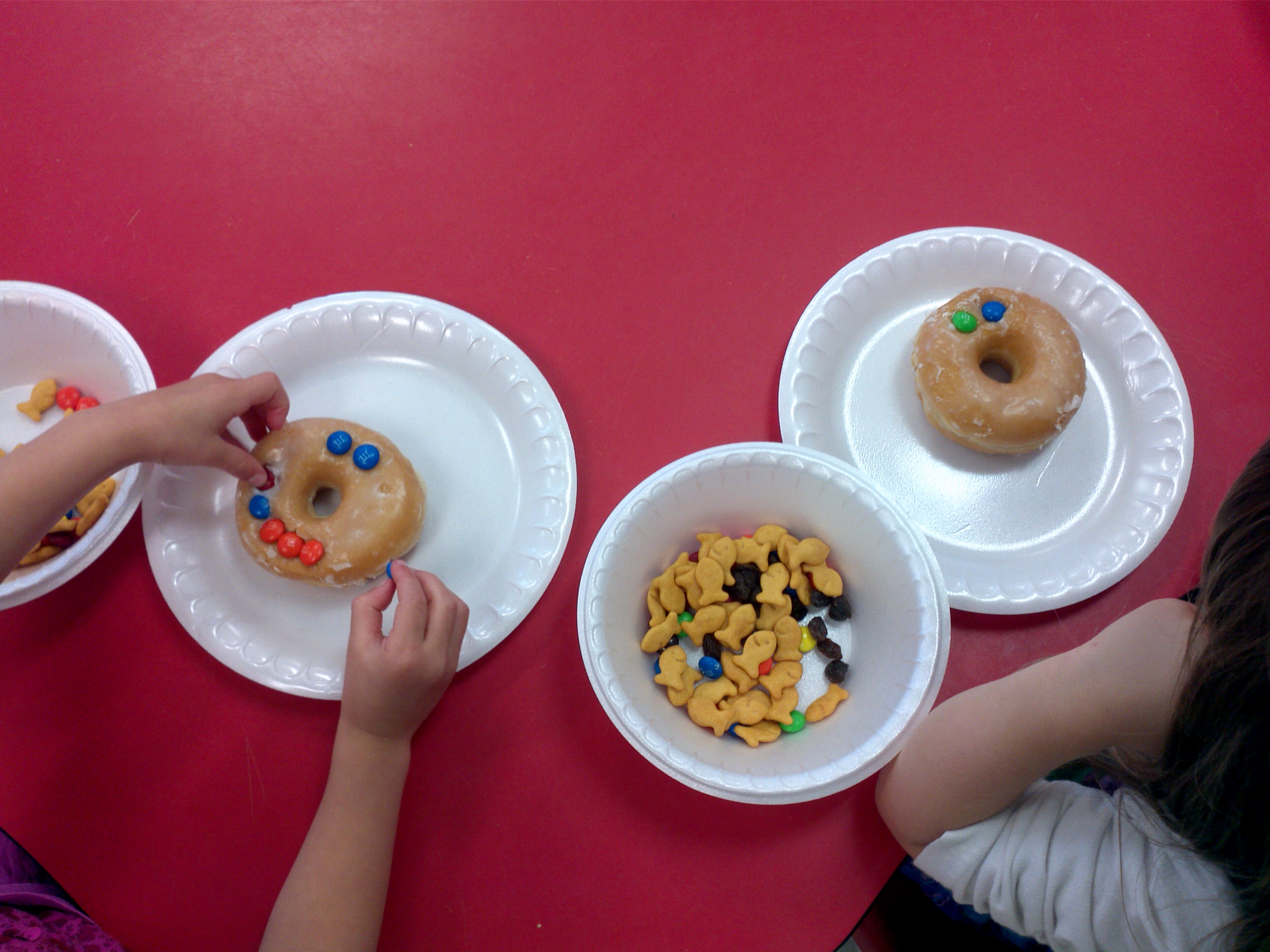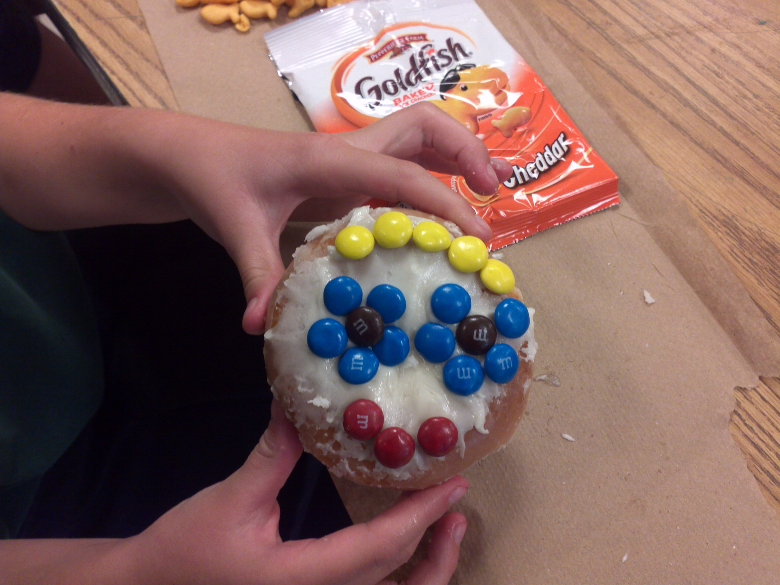 Amazing creations using goldfish, raisins, m&ms, and doughnuts to create a radial design. It’s a great way to close out the year and the kids love it!