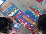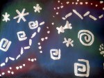 We started with chalk pastel on black construction paper. The most common lights are green but they can range to any color so the artists had free choice on their color. During the next class, we looked at the amazing line art of Geoff Slater (www.geoffslater.com). His paintings are a maze of one line that is constantly moving but never touching or crossing itself. It changes thickness and color at the same time, too. We used white tempera to paint shapes and lines into our sky to complete our Auroras.