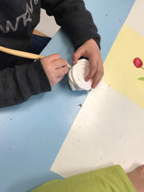 We’ve jumped right into Clay and Sculpture by creating finger puppet Bees and coil pot styled Beehives.