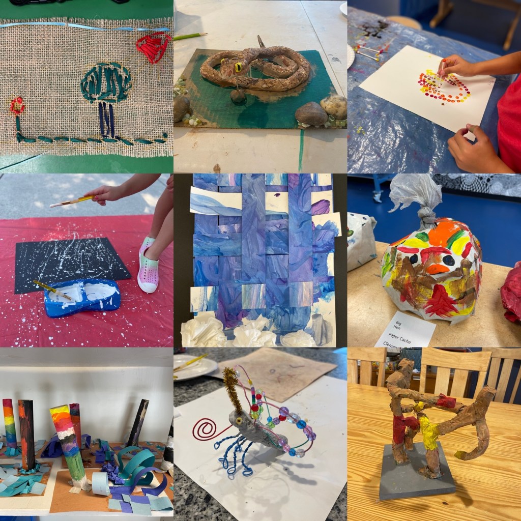 Please enjoy a selection of 9 artworks. These came from my Creative Arts curriculum preschool students, elementary after school and summer camps classes, as well as some middle school homeschool programs. I’ve been blessed to teach here in Wilmington for another year and I am looking forward to creating more art with young artists in 2024!