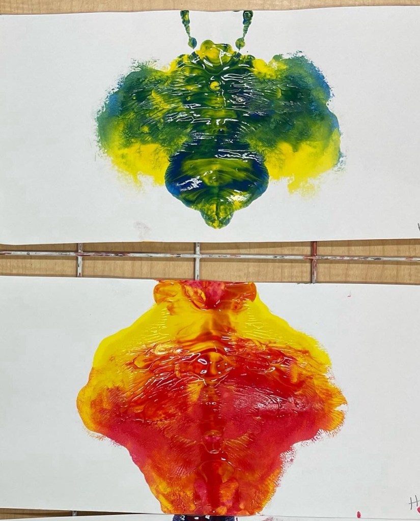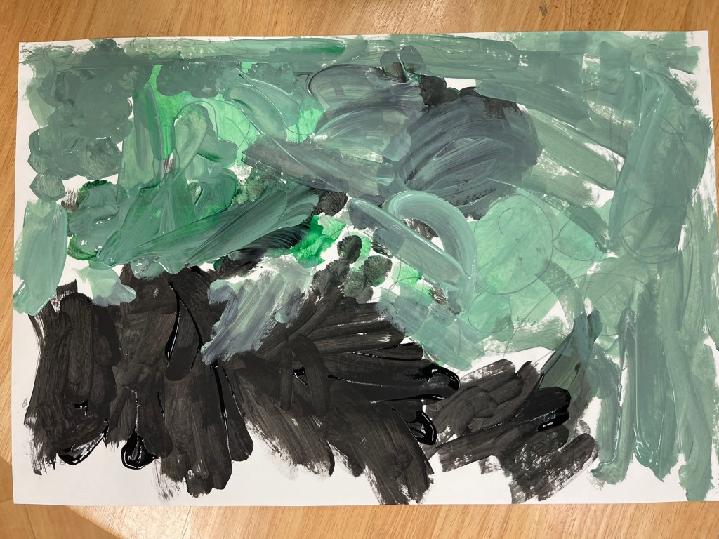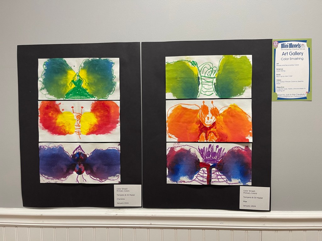 We are back up and creating after a holiday break. So far the artists have learned the secondary colors by smashing two primary colors together and then drawing what they “see.” Right now we are in the middle of creating a low relief mixed media painting using the atmospheric perspective of Henri Rousseau.