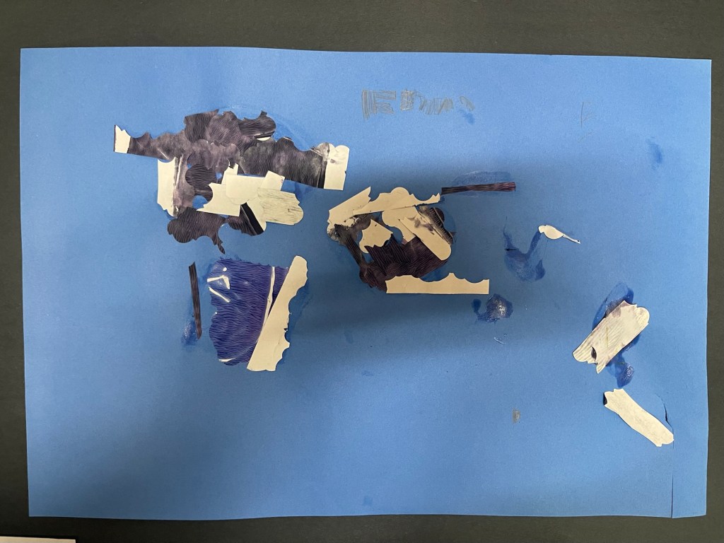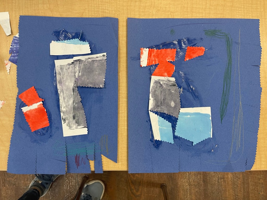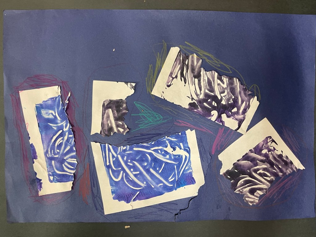 This was an all new session for me to offer and the artists loved it! We used tin foil, bubble wrap, sponges, and Gelli plates to make a variety of prints. Then, we used those prints to make collages from critters to outpace – scapes!