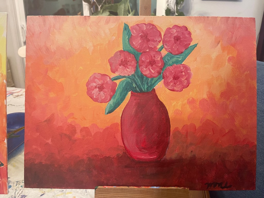 What a blast we had! I was thrilled to guide this fantastic group of aspiring female artists in creating a Valentine-themed flower painting. Using acrylics, they unleashed their inner creativity to produce individual masterpieces. I always ensure there is ample space for personalization. This makes every painting as unique as the artist who created it.
