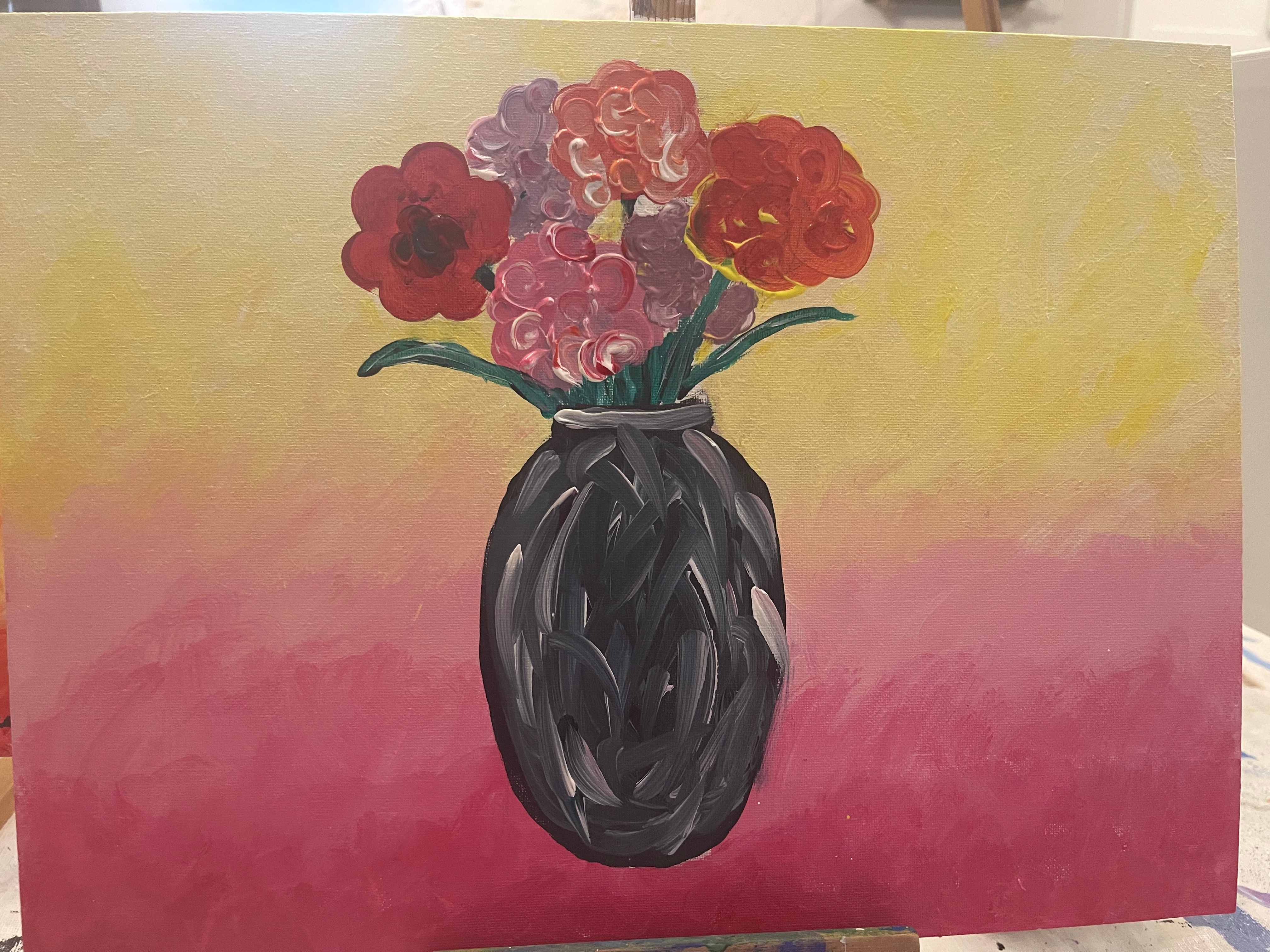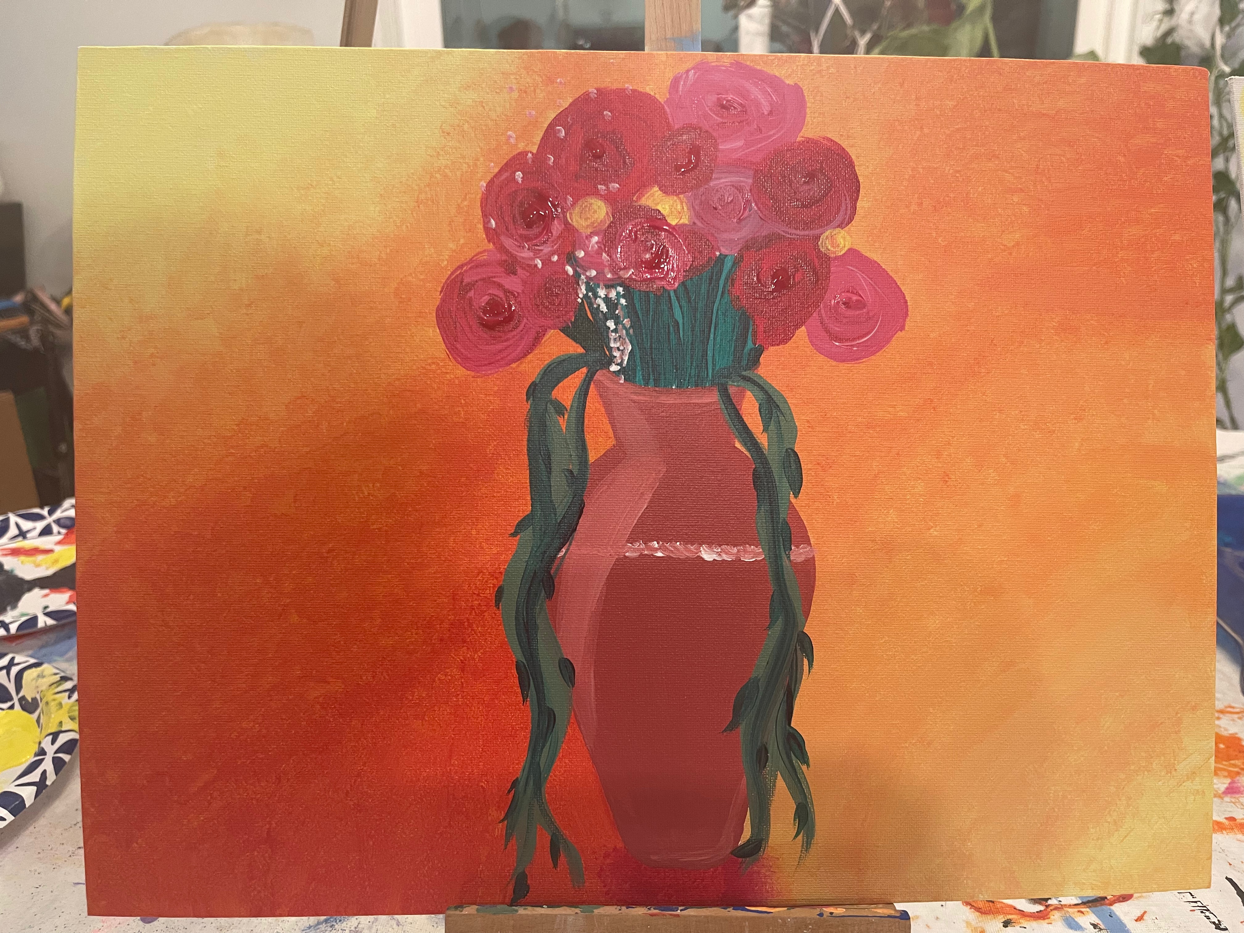 What a blast we had! I was thrilled to guide this fantastic group of aspiring female artists in creating a Valentine-themed flower painting. Using acrylics, they unleashed their inner creativity to produce individual masterpieces. I always ensure there is ample space for personalization. This makes every painting as unique as the artist who created it.